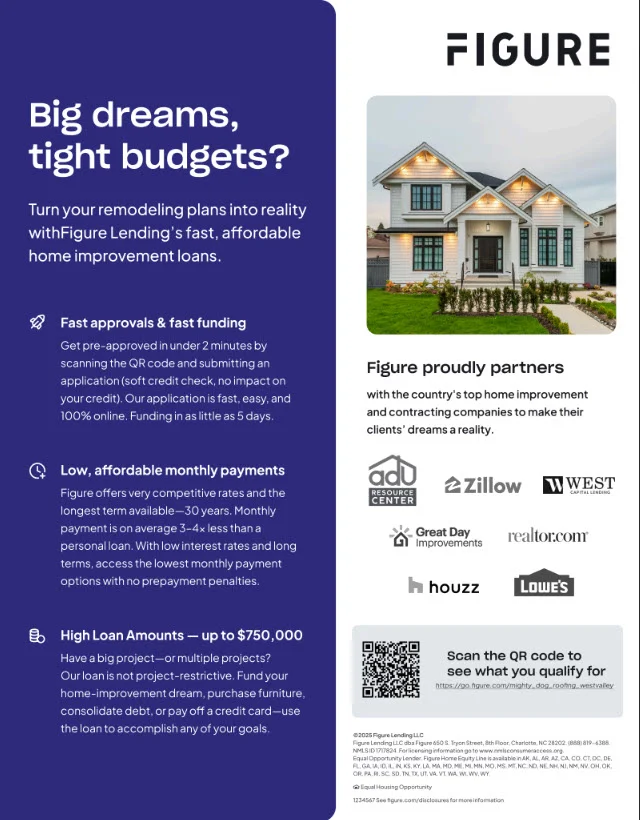 We also offer financing through Figure, a fast and flexible Home Equity Line of Credit (HELOC) option for qualified homeowners. This can be a great solution for roofing and exterior home improvement projects.